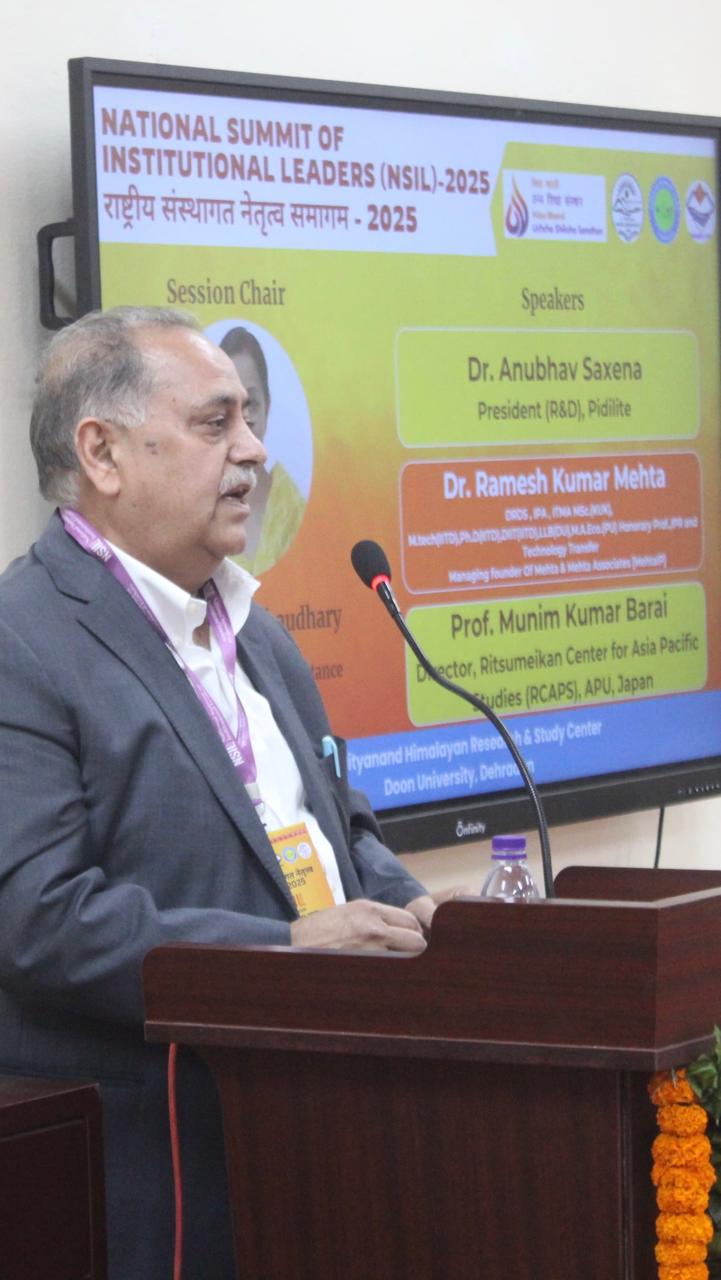 Dr. Ramesh Kr. Mehta delivered an invited talk at the National Summit of Institutional Leaders (NSIL). The event was held at Doon University on March 1, 2025. He explained how Patenting by Academia will help in developing the Industry-Academia Collaboration.